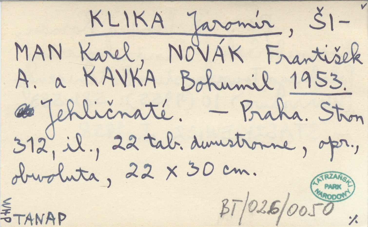 KLIKA Jaromír ŠIMAN, Karel. ; NOVÁK, František A. ; KAVKA, Bohumil. ; 1953 Jehličnaté.