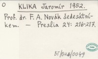 KLIKA Jaromír 1952 Prof. dr. F. A. Novák šedesátníkem.