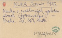 KLIKA Jaromír 1955 Nauka o rostlinných společenstvech (fytocenologie).