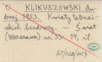KLIKUSZOWSKI Andrzej 1953 Kwiaty tatrzańskich bezdroży.