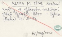 KLIMA M. 1959 Sezónní změny ve výškovém rozšíření ptáků Vysokých Tater.