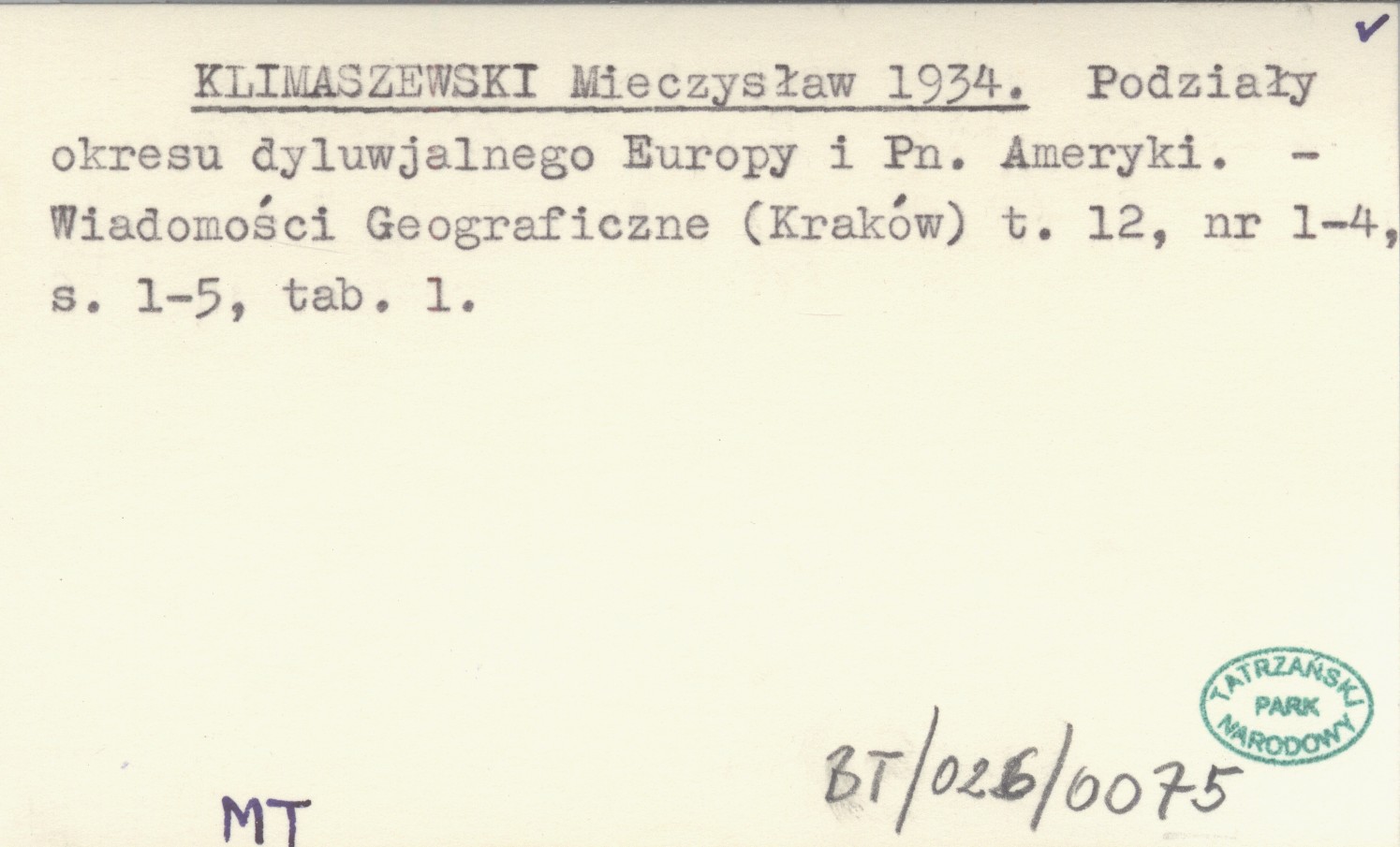 KLIMASZEWSKI Mieczysław 1934 Podziały okresu dyluwjalnego Europy i Pn. Ameryki.
