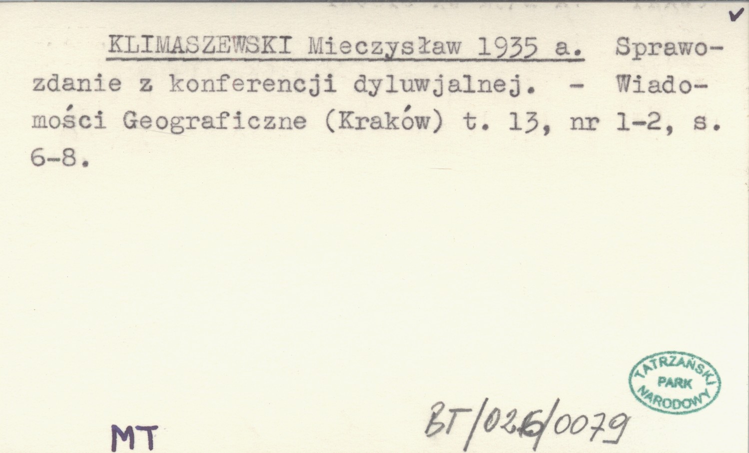KLIMASZEWSKI Mieczysław 1935 a Sprawozdanie z konferencji dyluwjalnej.