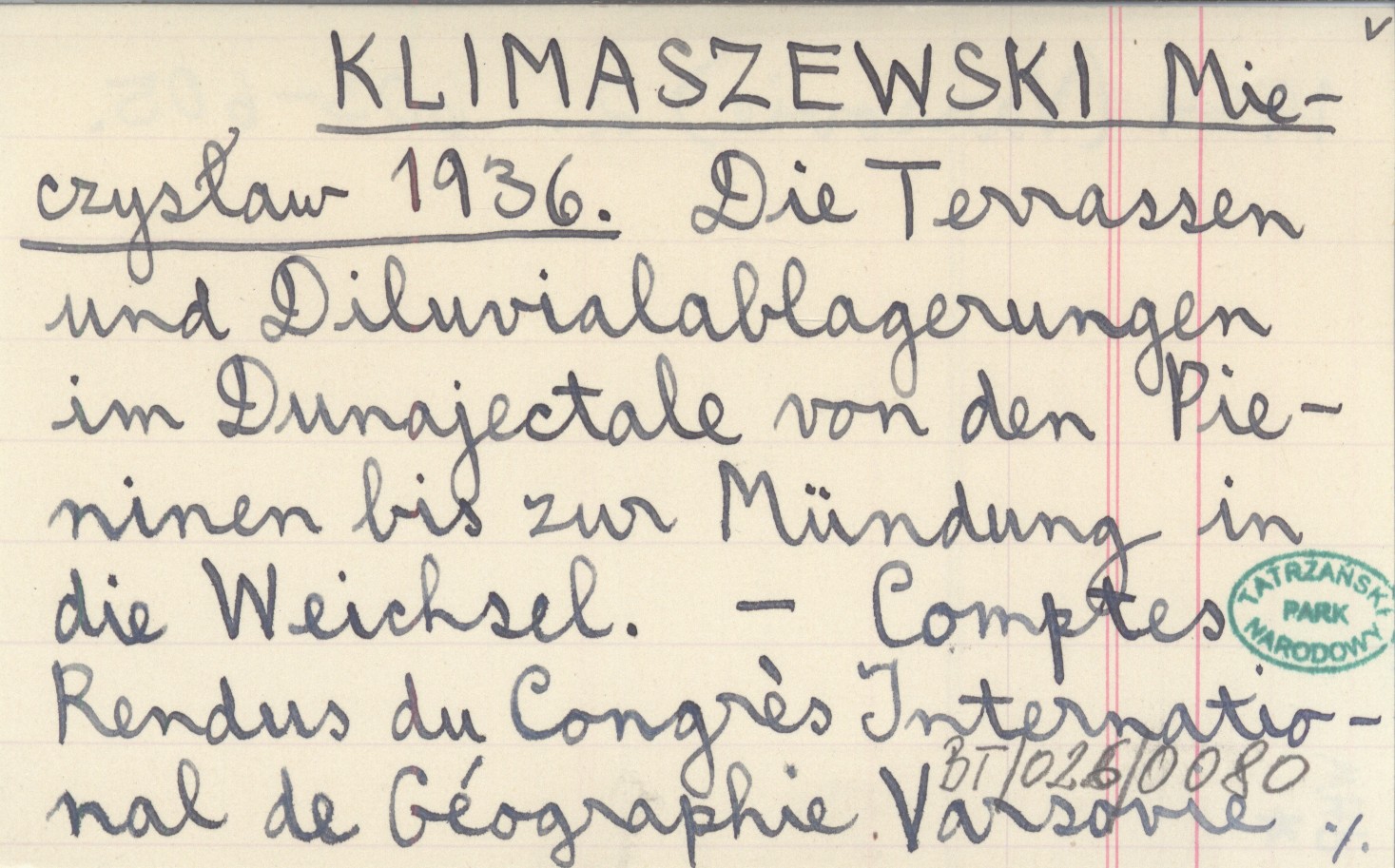 Comptes Rendus du Congrés International de Géographie Varsovie 1934 (Varsovie) , 2: 603-605.