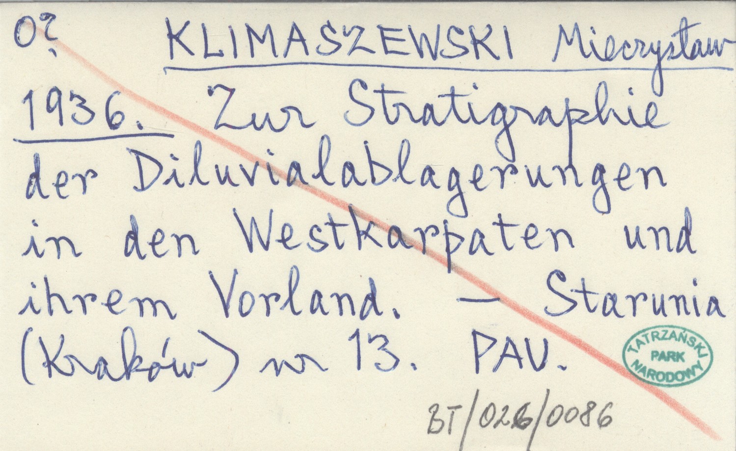 KLIMASZEWSKI Mieczysław 1936 Zur Stratigraphie der Diluvialablagerungen in den Westkarpaten und ihrem Vorland.