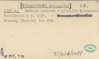 M.K. [KLIMASZEWSKI Mieczysław] 1936 a Badania naukowe w polskich Karpatach Zachodnich w r. 1936.