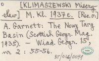 M. Kl. [KLIMASZEWSKI Mieczysław] 1937 e A. Garnett: The Nowy Targ Basin (Scottish Geogr. Mag. 1935).