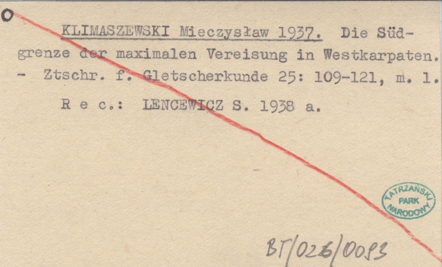 KLIMASZEWSKI Mieczysław 1937 Die Südgrenze der maximalen Vereisung in Westkarpaten.
