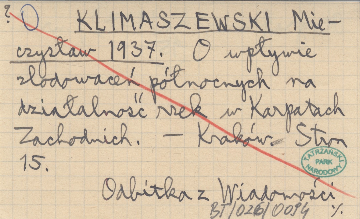 KLIMASZEWSKI Mieczysław 1937 O wpływie zlodowaceń północnych na działalność rzek w Karpatach Zachodnich.