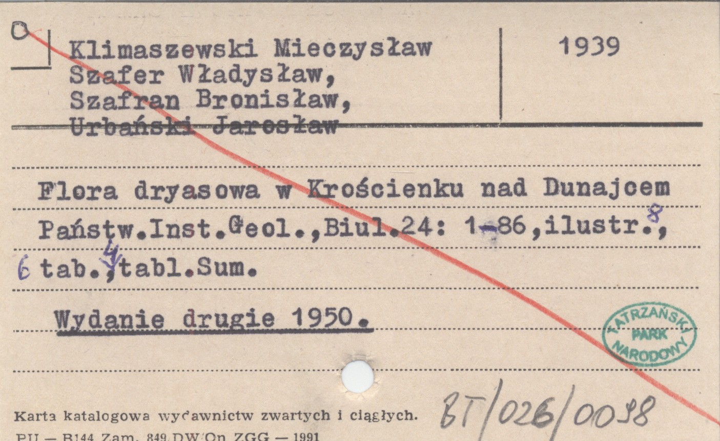 KLIMASZEWSKI Mieczysław SZAFER, Władysław. ; SZAFRAN, Bronisław. ; URBAŃSKI, Jarosław. ; 1939 Flora dryasowa w Krościenku nad Dunajcem.