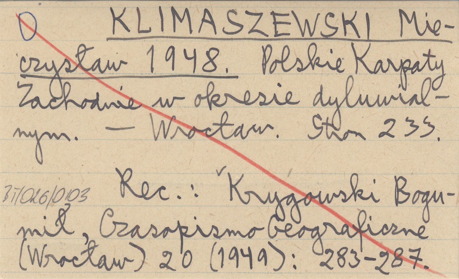 REC: KRYGOWSKI Bogumił, Czasopismo Geograficzne (Wrocław) 20 (1949): 283-287.