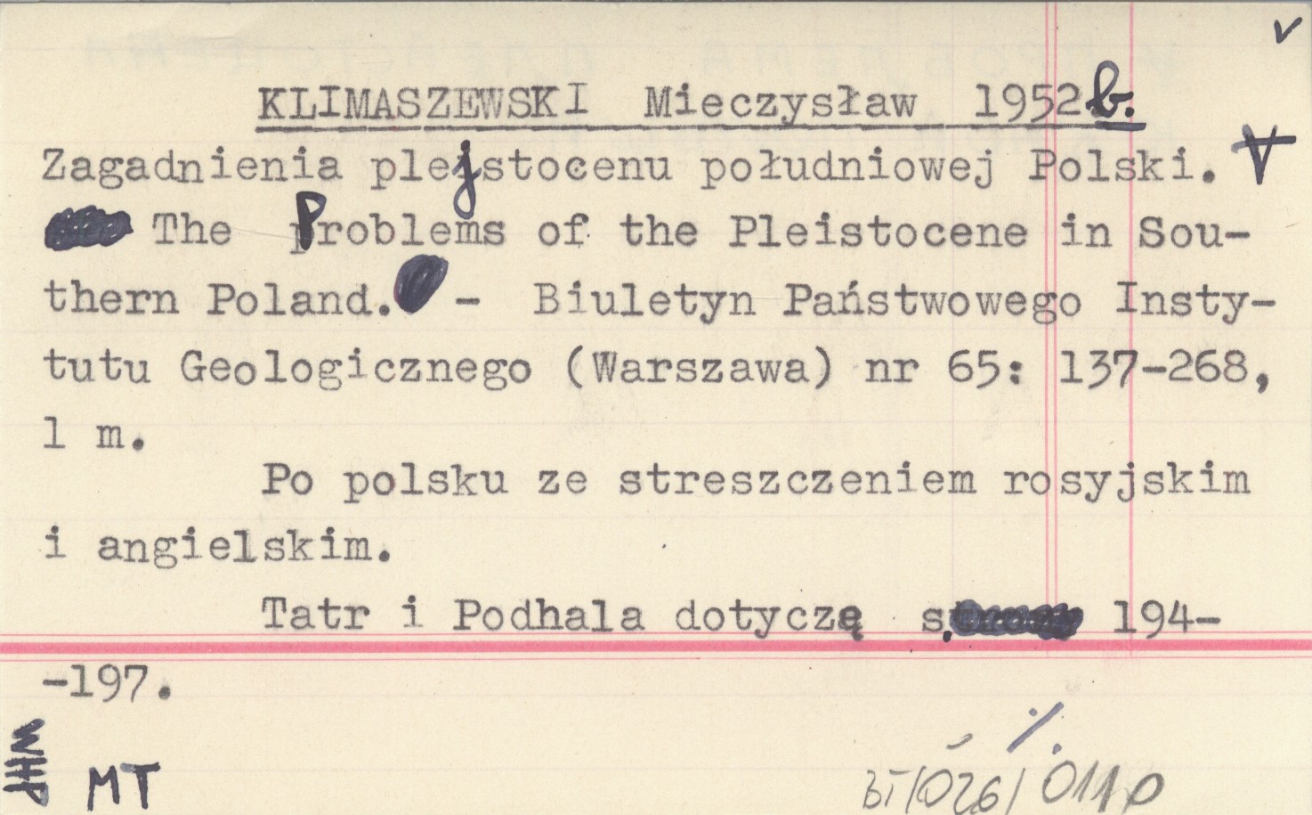 KLIMASZEWSKI Mieczysław 1952 b Zagadnienia plejstocenu południowej Polski. Problema plejstocena južnoj Pol'ši. The Problems of the Pleistocene in Southern Poland.