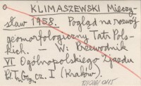 KLIMASZEWSKI Mieczysław 1958 [O badaniach naukowych w regionach górskich Polski.].
