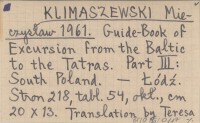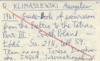 KLIMASZEWSKI Mieczysław 1961 Guide-Book of Excursion from the Baltic to the Tatras. Part III: South Poland.