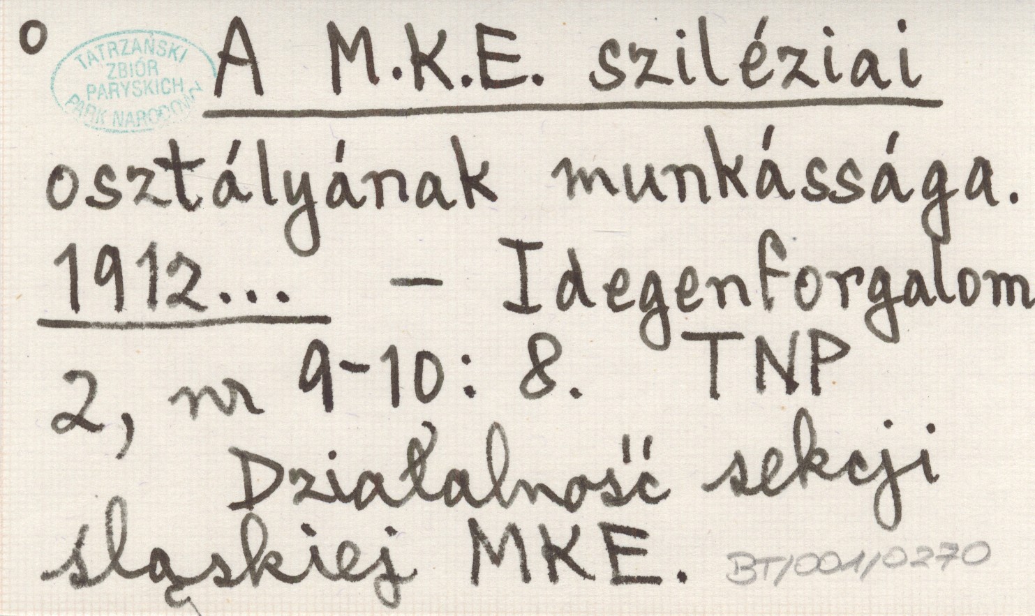 A M.K.E. sziléziai osztályának munkássága. 1912...