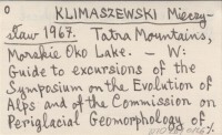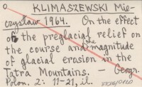 KLIMASZEWSKI Mieczysław 1964 On the effect of the preglacial relief on the course and the magnitude of glacial erosion in the Tatra Mountains.