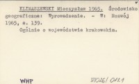 KLIMASZEWSKI Mieczysław 1965 Środowisko geograficzne: Wprowadzenie.