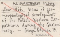 KLIMASZEWSKI Mieczysław 1966 Views of geomorphological development of the Polish Western Carpathians during the Quaternary.