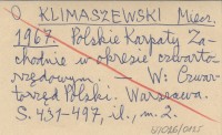 KLIMASZEWSKI Miecz. 1967 Polskie Karpaty Zachodnie w okresie czwartorzędowym.