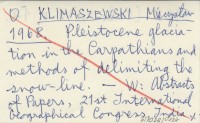 KLIMASZEWSKI Mieczysław 1968 Pleistocene glaciation in the Carpathians and methods of delimiting the snow-line.