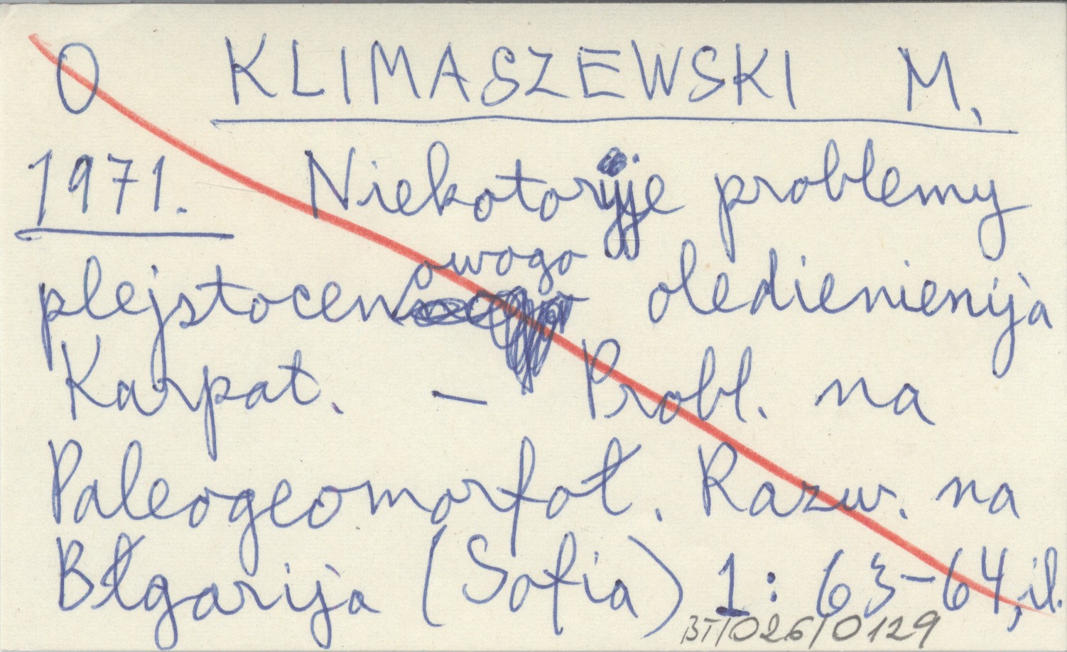 KLIMASZEWSKI M. 1971 Niekotoryje problemy plejstocenowogo oledienienija Karpat.