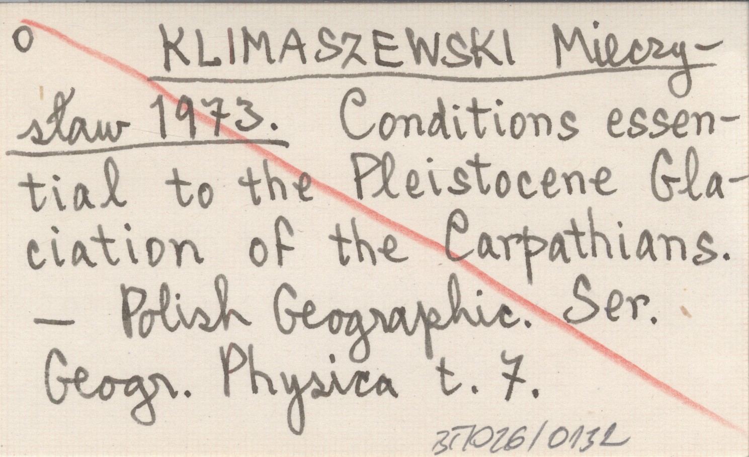 KLIMASZEWSKI Mieczysław 1973 Conditions essential to the Pleistocene Glaciation of the Carpathians.