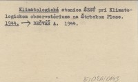 Klimatologická stanica ŠZSÚ pri Klimatologickom observatóriume na Štrbskom Plese. 1944