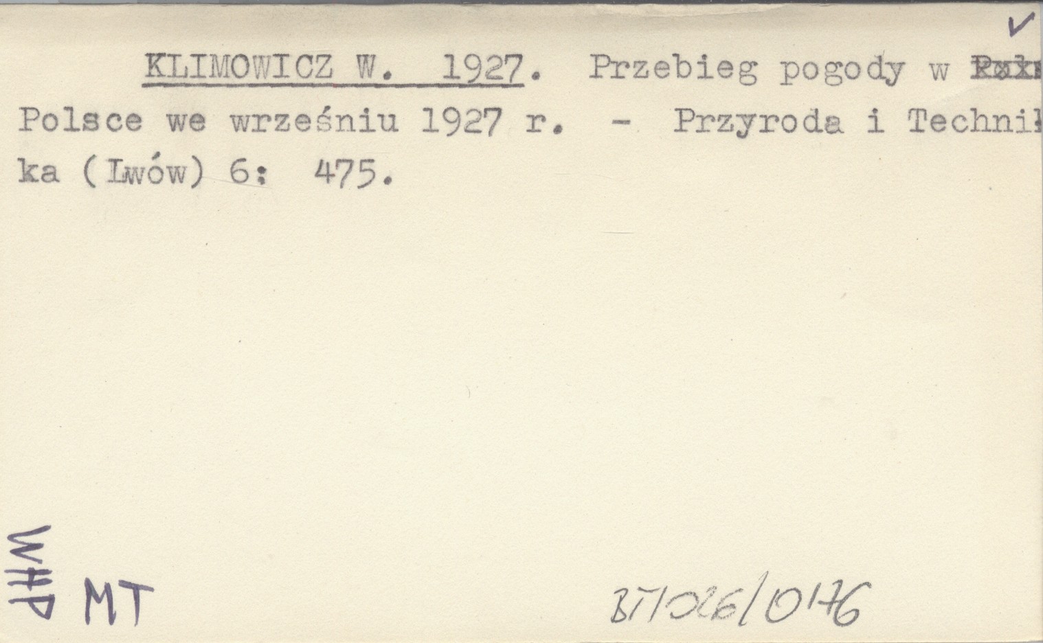 KLIMOWICZ W. 1927 Przebieg pogody w Polsce we wrześniu 1927 r.