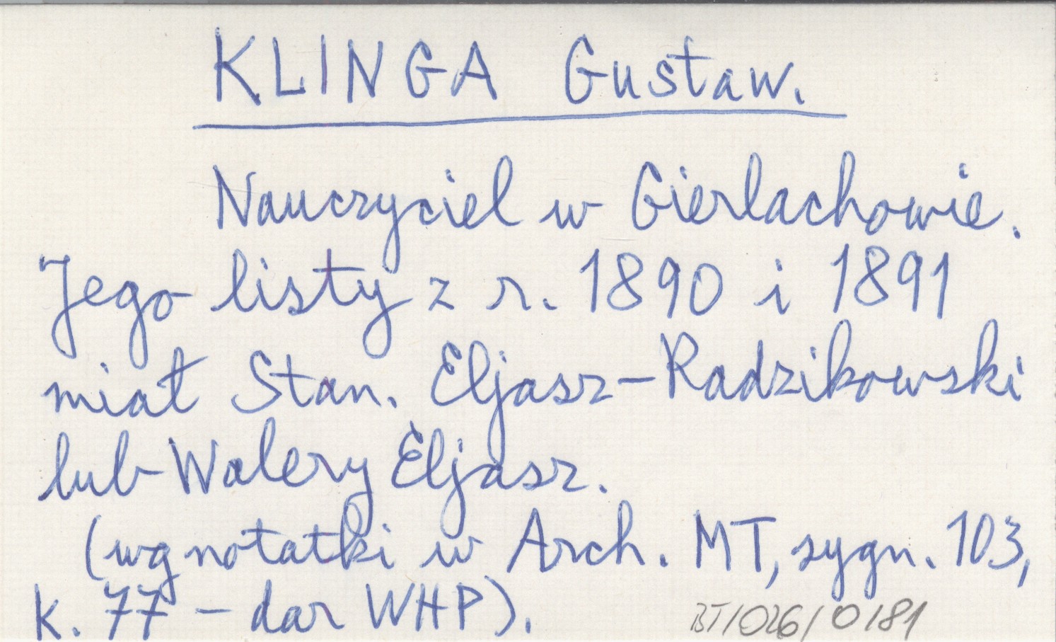Nauczyciel w Gierlachowie. Jego listy z r. 1890 i 1891 miał Stan. Eljasz-Radzikowski lub Walery Eljasz. (wg notatki w Arch. MT, sygn. 103, k. 77 - dar WHP).