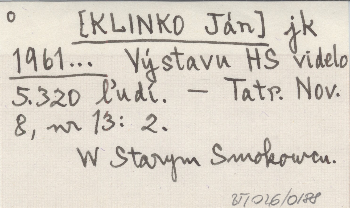 jk [KLINKO Ján] 1961... Výstavu HS videlo 5.320 ľudí.