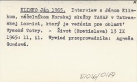 KLINKO Ján 1965 Interview s Jánom Klinkom, náčelníkom Horskej sluľby TANAP v Tatranskej Lomnici, ktorý je vedúcim pre oblas» Vysoké Tatry.