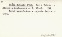 KLÍPA Bohumír 1960 Boj o Tatry.