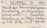 KLIPPEL O. 1943 Stand der Geomorphologischen Forschung im Generalgouvernement.