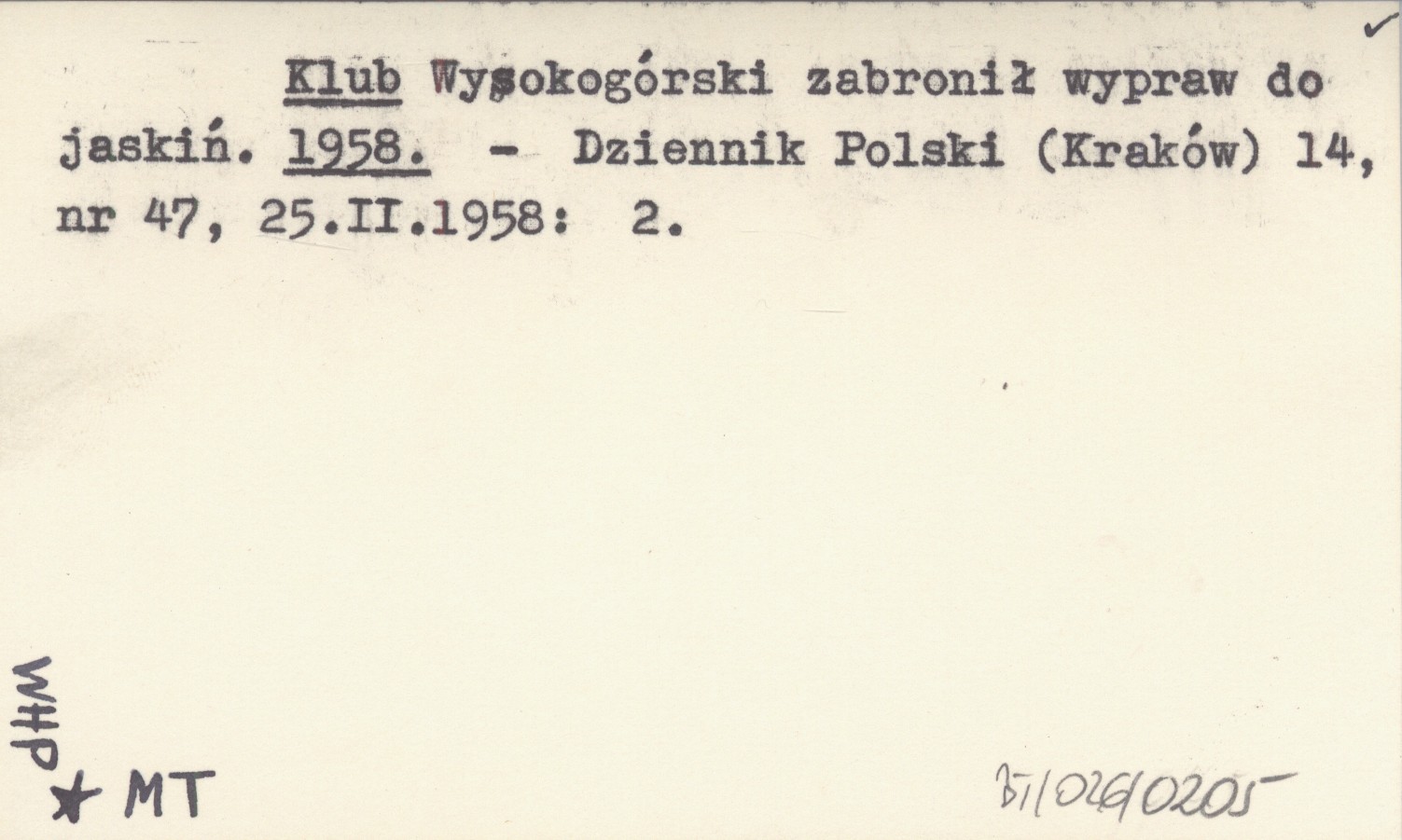 Dziennik Polski (Kraków) , 14, nr 47, 25 II 1958: 2.