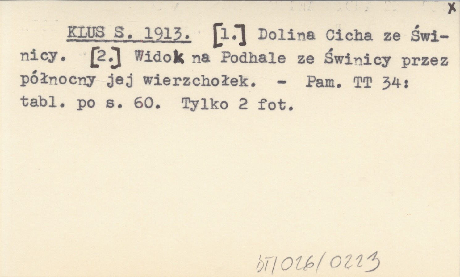 KLUS S. 1913 [1.] Dolina Cicha ze Świnicy. [2.] Widok na Podhale ze Świnicy przez północny jej wierzchołek.
