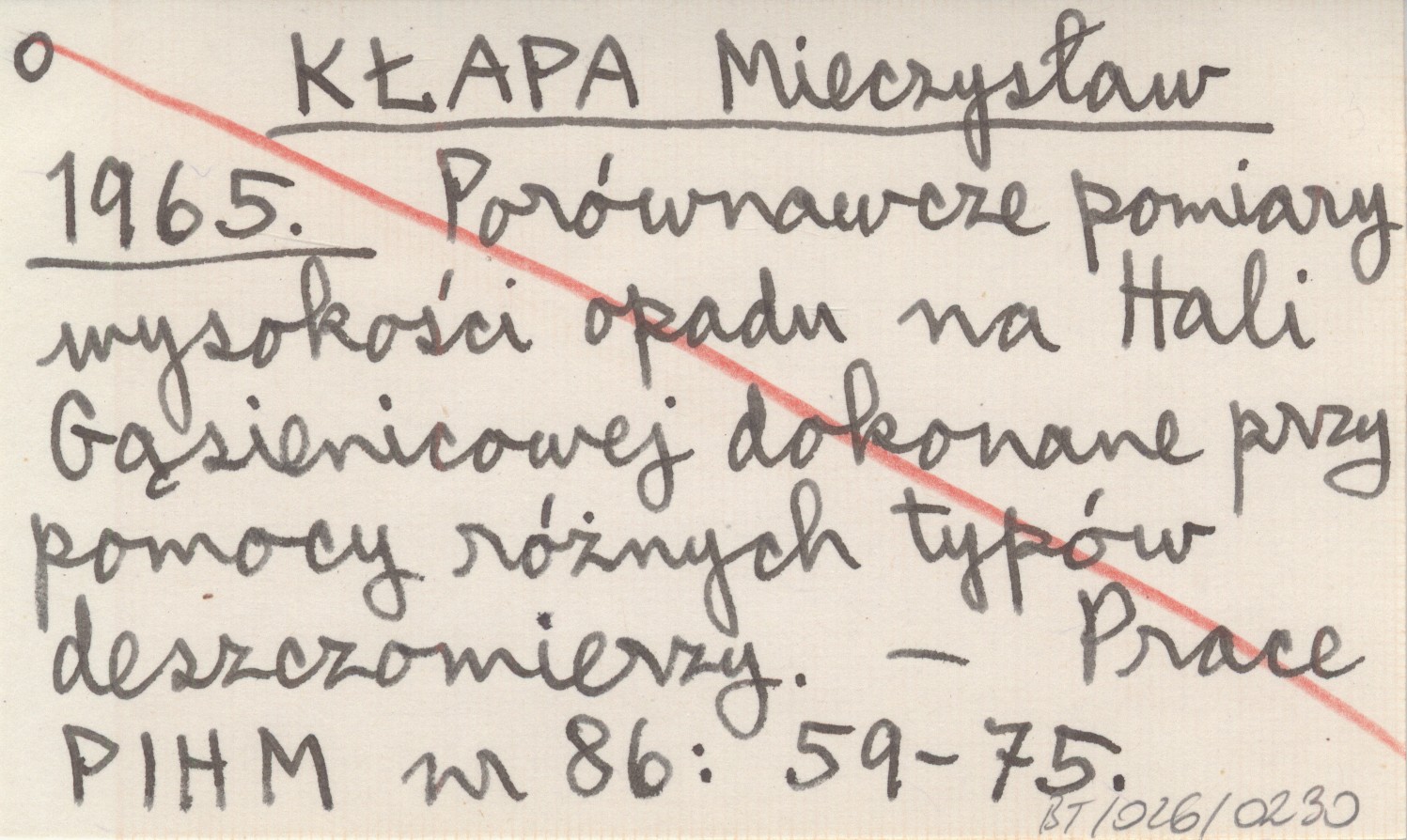 KŁAPA Mieczysław 1965 Porównawcze pomiary wysokości opadu na Hali Gąsienicowej dokonane przy pomocy różnych typów deszczomierzy.
