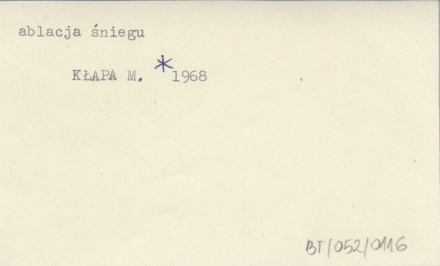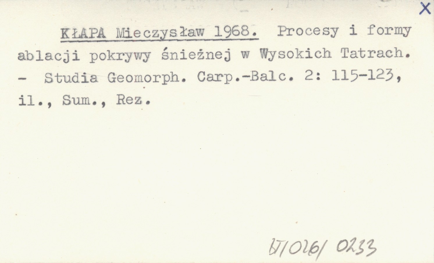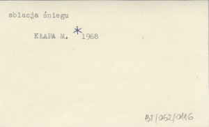 KŁAPA Mieczysław 1968 Procesy i formy ablacji pokrywy śnieżnej w Wysokich Tatrach.