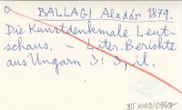 BALLAGI Aladár 1879 Felvidéki könyvtárburárlatok.