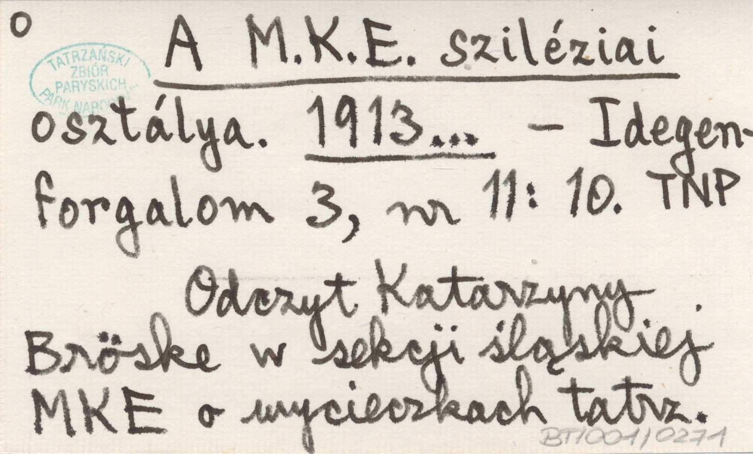 Idegenforgalom, 3, nr 11: 10. Odczyt Katarzyny Bröske w sekcji śląskiej MKE o wycieczkach tatrzańskich.