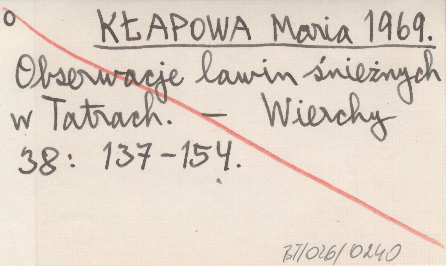 KŁAPOWA Maria 1969 Obserwacje lawin śnieżnych w Tatrach.