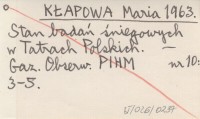 KŁAPOWA Maria 1963 Stan badań śniegowych w Tatrach Polskich.
