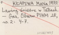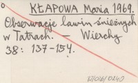 KŁAPOWA Maria 1969 Obserwacje lawin śnieżnych w Tatrach.