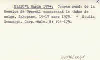 KŁAPOWA Maria 1974 Compte rendu de la Session de Travail concernant le théme de neige, Zakopane, 15-17 mars 1973.