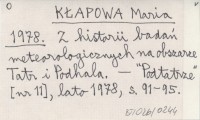 KŁAPOWA Maria 1978 Z historii badań meteorologicznych na obszarze Tatr Podhala.