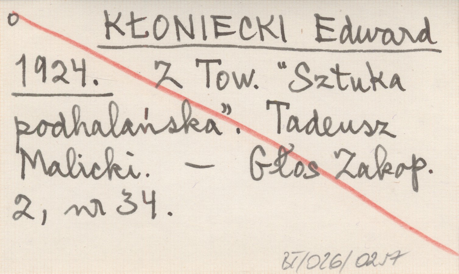 KŁONIECKI Edward 1924 Z Tow. "Sztuka podhalańska". Tadeusz Malicki.