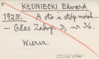 KŁONIECKI Edward 1925 A oto u stóp moich...
