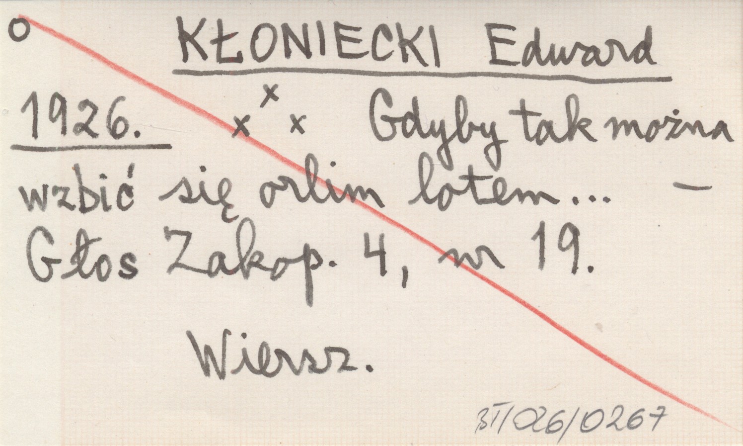 KŁONIECKI Edward 1926 Gdyby tak można wzbić się orlim lotem...