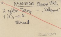 KŁONIECKI Edward 1930... Cieniom ¶p. Zosi Smreczyńskiej (Orkanównie).
