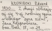 KŁONIECKI Edward 1930... Z okazji zbliżającej się 4-ej rocznicy zgonu wielkiego "syna ziemi", Jana Kasprowicza.
