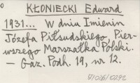 KŁONIECKI Edward 1931... W dniu Imienin Józefa Piłsudskiego, Pierwszego Marszałka Polski.